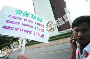 “卖楼、卖楼、105平方200万。”前天下午5点,记者在海珠区滨江东路上目睹了一队举着木牌的地产中介在路上兜售叫卖二手楼。这种景象近日在广州多处可见,由于加息、限购令对楼市的双重影响,二手楼中介市场也遇到瓶颈,不少中介行已经使出比应对2008金融海啸时更强的促销招数。 看楼客普降三成 根据满堂红的统计数据显示,自从加强版新政出台后,广州各区二手房的看楼客普遍减少了30%左右。记者了解到,不但看楼客减少了,一些原先有意卖房换大屋的业主也变得谨慎起来了。 “我们现在每天都要出来巡街。”在滨江东路上,一位举牌的合富中介小黄告诉记者。不仅仅是这家中介公司,附近的多家中介近日都自制了巡街用的木牌,这种木牌类似于运动会开幕式运动员进场的引导牌,牌子上贴着花花绿绿的纸张,写着各类“笋盘信息”。一边巡街,一些中介口中还念念有词,大声叫卖。路过的街坊无不觉得好玩,住在附近的石小姐说,“见过在路上叫卖包子的,还没见过叫卖房子的”。