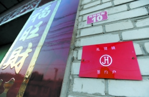 村民杨大海(化名)瞅着自家门口的红铁牌发愁,铁牌上印着“礼贤镇签约户”。
