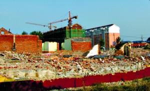 9月16日,山东诸城土墙社区部分宅基地已经拆除,远处为村民集中居住的楼房正在建设。本报记者 涂重航 摄
