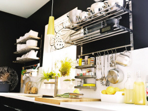 解决方案:连壁储藏件,让所有的物品近在眼前,近在手边,却又不占用台面空间,你的厨房生活将更加高效。厨房用品都应放在方便取用的位置和高度,如调味料放在灶炉边,大件的锅碗都叠在敞开式隔板上等。