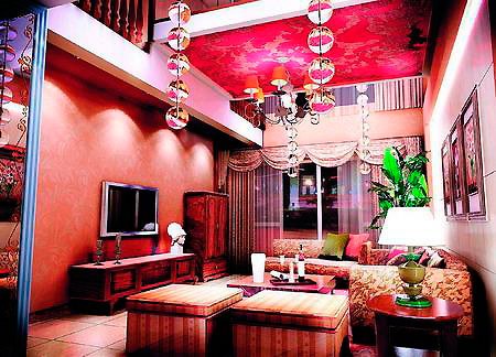 看起来很奢华,颜色明快,接近于印度风格,它的华丽基本都是靠软装饰来营造的,家具饰品都比较朴实。