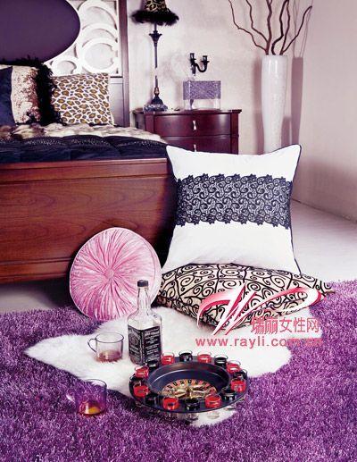 想营造卧室温暖浪漫氛围,一块紫色的羊毛地毯是比较适宜的,完全可以在柔软的地毯上摆上酒具,浪漫的气息瞬间弥漫开来了。