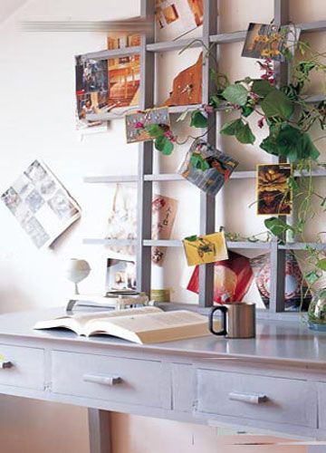旧窗格和抽屉桌组合,便是一个精彩的书桌。格子上贴满漂亮的图片,种一些花花草草,让藤蔓爬上窗格,看累了书,抬头就是养眼的风景。