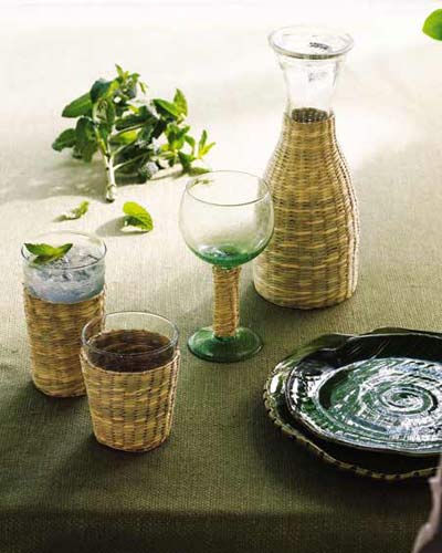 如上图,虽然这款家居用品用的并不是特殊材料,而只是普通的藤条。然后,这样设计却让一套再普通不过的家居用品别树一格。不但在美观上添加了另类的元素,而在触感上也考虑到了手与杯的接触,藤条的肌理触感怎样也会比冰冷的玻璃要温暖、舒服吧。