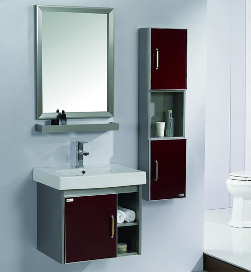 现代风格的收纳架,上面两层可以放上每日使用的漱口杯,香皂盒之类的东东,下面那的那里还可以挂上常用的毛巾,实行多功能收纳,美观实用。