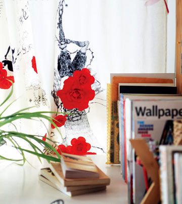 陪伴了主人很久的手绘棉布窗帘,主人对它的感觉已经由一开始的新奇转向平淡,甚至,有些麻木了。红色的小布块,随手剪成大小不一的样子,缝制成一朵朵怒放的花朵,固定在原来的窗帘上——夏天到了,连窗帘上都开满了花朵——这是我们要的新鲜感觉。
