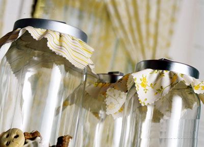 这是个非常简单、容易实现,但是却非常好用的小创意,很适合那些没有密封效果的储物罐。将布料剪成大于储物罐口的形状,将其附在储物罐口,按照正常方式盖上储物罐的盖子,就可以了。可以防止罐内外的空气与湿度流通,防止里面的物品过快变质。