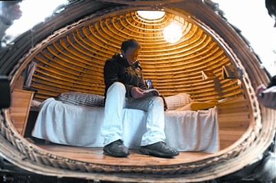 最近,北漂男青年戴海飞耗资6400多元钱制作的蛋形小屋在网上引发关注,网友对小屋的创作理念和别致造型表示惊奇。昨天上午,记者来到戴海飞的“蛋屋”进行了探访。