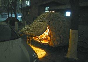 刚毕业半年的戴海飞利用公司建筑设计创意,用竹子造出这座“蛋形”小屋作为蜗居,从湖南老家运至其公司楼下。该小屋利用竹条、钉子等制成,材料总成本6427元。戴海飞白天在楼上的公司工作,夜间回到屋内过夜。该创意原名“城市下的蛋”,屋下装有轮子可以挪动,意在寻求高房价下城市流动人群的生活方式。本报记者 赵亢 摄