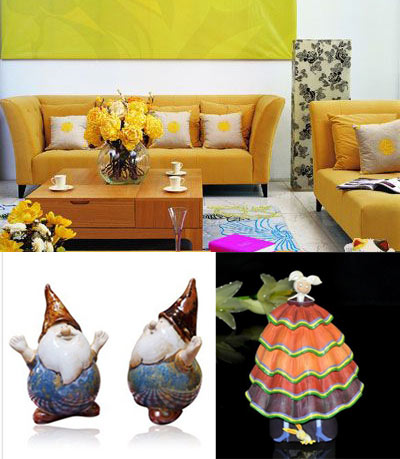 Style 1:客厅装修,金+黄 小空间里的华贵