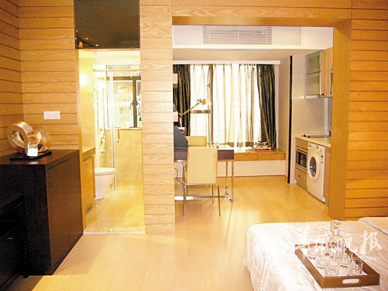 只要是正常的自住型小户型物业,厨房是必不可少的功能空间之一。就目前的交楼情况而言,绝大多数小户型的厨房都为相对的封闭式设计。如果想将有限的空间变得相对大一些,我们可以考虑用开放式的厨房设计。因为开放式厨房没有明显的门或墙,看起来就和餐厅或客厅连成一体,此时视野就会开阔不少。橱柜若延伸至与餐台连成一体,那样就更实用和更节省空间。