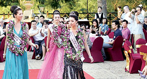 昨天下午,通州月亮河城堡项目内美女如云,世界小姐北京区冠、亚、季军选手等20位佳丽的现场表演吸引了数百位居民以及购房者的围观。