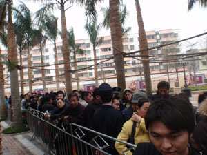 刚来海南不久的吴先生排队拿号似乎很有经验。他跟几个朋友提前几天就联系好了几名农民工“排队”。每个农民工200元,从18日晚七八点钟开始排,排到第二天早上七八点,再来换班亲自排队。尽管如此,吴先生也郁闷不已。原本他以为自己排在比较靠前的位置,但开盘前时,开发商打开第一道门,里面已经排着六七十个人了。