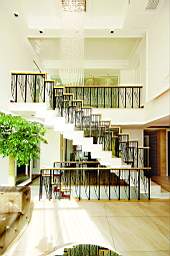 抽象的用形是空间中个性的表现,形的取材来自于自然的树的形状,同样是加以抽象与模糊,便成了主题楼梯的扶手。