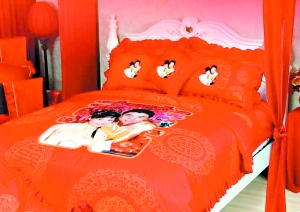 见惯了床品上的大红玫瑰、传统龙凤、牡丹或可爱的Hello Kitty,但你是否能想到:被子也可以印上自己的婚纱照,还能把心爱的人和自己的名字、结婚纪念日绣在婚枕上。