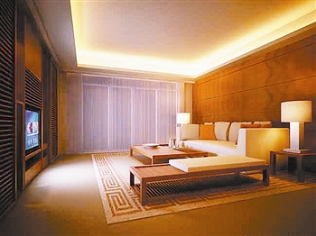 作为最能营造情调的卧室,以普通照明光源为主的方法就不太适用了,建议采用多个发光源来进行组合照明,一般照明的照度值不宜太高,因为高照度的照明常常会令人兴奋。另外要根据室内的装修风格及个人喜好选择合适的光源色,在冬季用黄色、红色、紫色是最合适的,不过需要提醒的是,高色温的光源会呈现清新明亮的主题,使用高色温的光源在低照度的情况下会使房间显得苍白。
