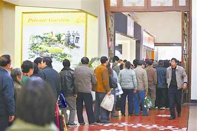 12月5日,上海房展会吸引了不少购房者。在一家房产商的展台前,登记会员的市民排起了长队。