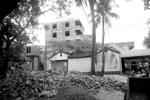 抢建、改建、加建房屋的工程遍地开花,进入白沙坊内的道路旁到处堆放着泥沙和砖块,但就是不见钢筋;不少的房屋搭上了竹脚手架正在改建、加建和抢建施工。从这些房屋这样的建筑结构可以发现:这些房屋大部分是从一层平房或底层楼房往上加盖的。