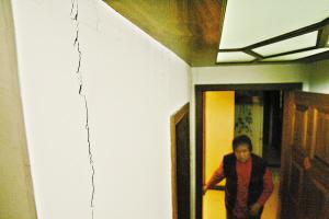 14日下午,记者来到燕港怡园小区D座蔡先生家里。这套房子140多平方米,2000年6月买房后,蔡先生又拿出12万元进行装修,2001年入住。可在2002年,蔡先生一家忽然发现,屋内的墙面开始出现一道道裂缝。