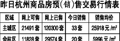 昨日,杭州主城区预定以及交易数量大幅下挫,预定量从前一个交易日的145套骤减为15套,交易量也从89套降至33套,成交均价为25918元/m2。余杭区再次延续了前日的下降走势,预定数量从3套下跌为1套,交易量也从36套减少为20套,成交均价为5996元/m2。
