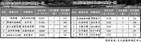 上周成交均价前五名的楼盘中,依然有4个占据本周前五。御翠园和翠湖天地御苑本周以更高的成交价格,巩固了其上海豪宅之首的位置;远中风华园后来居上,以3.6万元/平方米的成交均价位居本周高价房成交榜第四。