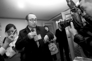 潘石屹报到时被众多记者包围。本报记者 张斌 摄