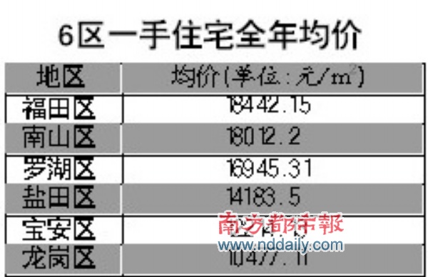 从不久前深圳市国土房产局公布的一组曲线图上可以看出,深圳去年一手商品房均价由1月的10872元/m2起步,随后一路上涨,到了去年10月份达到了全年的最高点17350元/m2.而到了11、12月,则出现了小幅回落。其中,11月份的均价为15069元/m2,12月份为15648元/m2.受最后两个月市场极度冷清影响,全面的一手商品房均价保持在13369.62元/m2的水平。