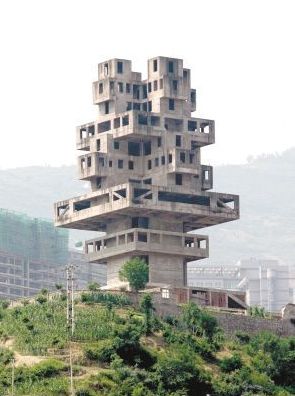 在电影《三峡好人》中,影片结尾部分有一个异化的火箭升空,火箭主体就是奉节县“华字塔”,这个塔由于成为烂尾工程,最近被炸毁拆掉。