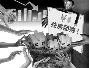 图:团购队“挥刀” 开发商“低头” 制图 贺信 图片来源:新民晚报