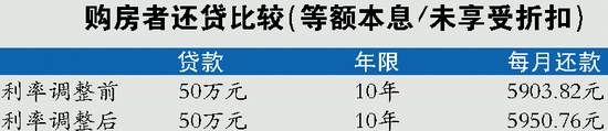 以一笔50万元、10年期的个人住房贷款为例,采取等额本息还款法,加息前月还款额5903.82元,加息后为5950.76元,每月多还46.94元。