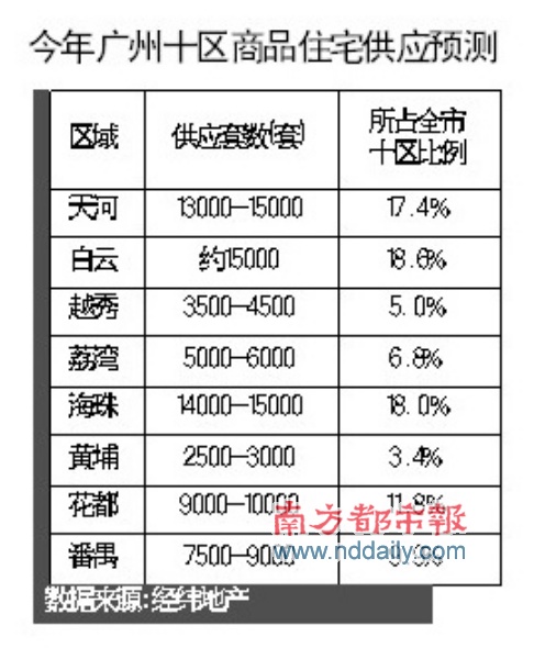 在商品房上,预计今年新盘上市数量超过100个,同比增加了1/3以上。海珠、天河、白云、荔湾、越秀等5区的新盘入市数量名列前茅。从分片区来看,白云、海珠、天河等是2008年供应最为集中的区域。越秀、荔湾、萝岗的供应量增加明显,老城区全年的供应量增加到了破天荒的1万套,萝岗区供应量的迅速放大,表明这个东部新城的建设已经如火如荼。(记者 李美钰)