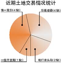 政府枪打出头鸟的决心使得众多开发商们不敢贸然行事,不过什么都有例外。根据北京市土地整理储备中心的统计数据显示,从11月1日到现在已经成交的11块土地中,价高者得的有4块之多,占到了1/3有余。政府在进行“通过调控地价从而达到调控房价”等调控措施的同时,对于某些地块的“放任”行为着实让人摸不着头脑。