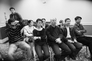 在昨天的媒体见面会上,CNN、全国广播公司、美国国家公共电台等主流媒体全都到场,当地华人媒体、中国驻洛杉矶部分媒体更是无一缺席。现场媒体人员近100人,但真正的主角——购房团成员却只来了10人左右,稀稀拉拉地坐了两排椅子,让电视摄像和摄影记者无所适从。购房团成员显然没有预料到媒体这样的阵势,每个人都面无笑容,一些成员看到媒体拍摄就急忙躲避。购房团成员代表殷国华律师发言时开门见山地说,实在没料到会有这么多媒体来采访,大家都感到有一点压力。