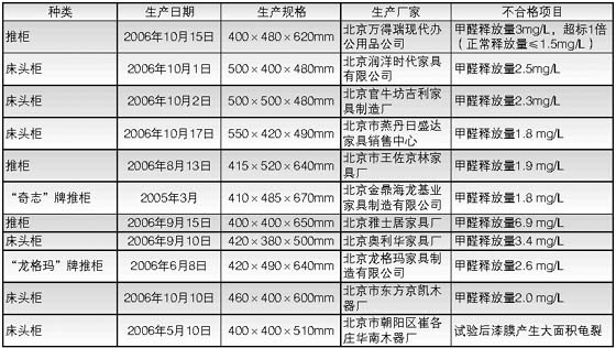 北京市质监局昨日发布本市118家企业生产的118种木家具抽查结果,这些家具存在甲醛含量释放量超标、性能不合格等五方面问题。