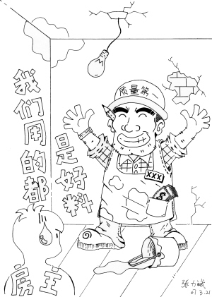听着这样的称呼是不是备感亲切?是不是觉得他在为咱着想?特想对他说一句“谢谢啊”。其实,这是一些施工队为了多捞钱而做的掩护。首先,如果没有监工,他们可以用次料换走你已验收的材料,并且大肆偷工减料,然后把剩余的转移变卖。这样的工程,表面部分出了问题以后还好补救,但如果水电这些隐蔽部位被“精简”了,日后一旦出现问题,将很难解决;其次,施工方经常让你买一些辅料,而这些小钱日积月累也会为他们省下一笔不小的数目;第三,对于装修公司突然提出的新设计方案,如果同意,日后将会成为他们多加价的筹码,并且由于是混合工,并没有受过专业训练,质量也难以保证;最后,也是最重要的一点,中期款一定不要轻易付,拿钱走人的案例比比皆是。