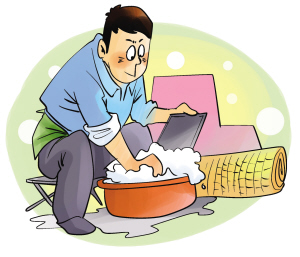 凉席的清洗相对简单,只要用毛刷蘸热水烫洗席面和缝隙处,然后在阳光下晾晒20分钟即可。这样不仅可以清除汗渍,同时可以杀死引起过敏和炎症的虫体及虫卵,保证清洁健康。需要注意的是,夏季人体容易出汗,皮屑、灰尘容易进入凉席缝隙中,加之潮湿环境,容易滋生螨虫,因此在使用凉席的过程中最好做到“一天一擦洗,一周一晾晒”。