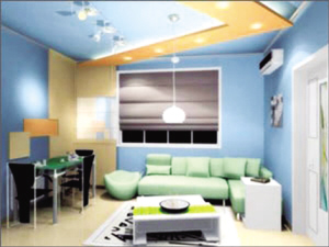 越是小户型,越要强调空间的动感,否则会流于单调乏味。“动”起来的一方面是要做出层次感,可以用色彩来制造,比如在墙的颜色上做文章,深浅搭配,这样能给人带来视觉上的差异感。另外,还可以尝试做局部吊顶,这样不仅可以隐藏线路还可制造出高低不等的视觉感;“动”的另一方面是空间要有灵动之感。玻璃是“法宝”之一,巧妙地利用玻璃,不仅能弥补采光不足,还可以让空间富于变化。同样,用纱幔、百叶等做软隔断也会让小屋内充满灵动之气。(胡波)