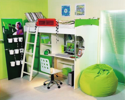 另外,创造出足够的储藏空间也是家长千万不能忽略的。孩子在成长时期发展很快,每个时期都有很多东西,收纳空间就显得尤为重要。柜子自然必不可少,但在儿童房内最好不要把柜子做成死的墙面柜,固定的墙面柜也许一时能容纳很多东西,但不利于房间格局的调整。儿童组合床是最为合适的,床下的储藏柜可以用来收纳玩具、杂物,既节省空间,又很便捷。