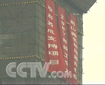 在长沙市韶山路一个繁华的十字路口,一栋刚封顶的楼盘十分醒目。从很远的地方就可以看到,楼房外墙上挂满了大红色条幅,上面写着:政府重点支持项目、2007年竣工交房等字样。
