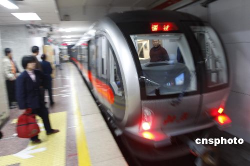11月6日,新型空调列车在北京地铁一号线调试运行,使北京最早的地铁线告别没有空调车的历史。年底前,两条地铁上计划各投入6组这样的列车运营。据介绍,新车为六辆编组,最大载客能力为1820人,比目前运营中的车辆多容纳400人左右。新型电动列车为不锈钢车辆,车体长度19米,宽2.8米。新车座椅的椅面均采用柔软的布质材料,并通过采取安装降噪阻尼器、提高车厢密封性能等措施降低客室内的噪声。一号线列车为红色基调,车身有红色腰线,二号线列车为蓝色基调,车身有蓝色腰线。中新社发 杜洋 摄