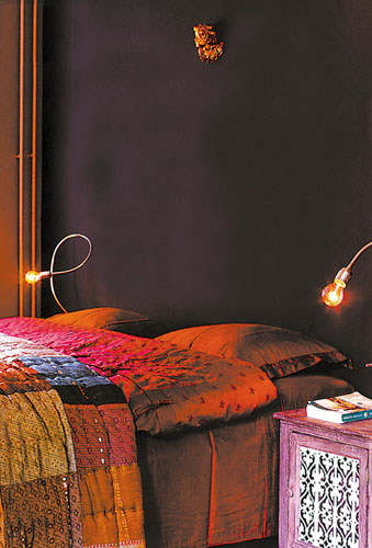 床两边放置款式不同的台灯,一只灯一副面孔。