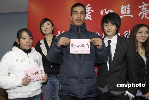 1月2日,臧天朔、叶蓓、江一燕等艺人在北京为不能回家过年的贫困大学生资助回家的路费。中国扶贫基金会“新长城”项目发起“爱心照亮回家路——资助贫寒学子回家过年”慈善活动,臧天朔等众多艺人出席活动并现场捐款。此次活动将帮北京地区的众多贫困大学学子得到回家过年的路费,让他们能够回家与家人团聚。中新社发 杜洋 摄