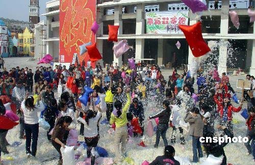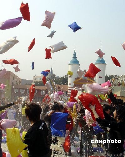 图:杭州“枕头大战”释放心理压力