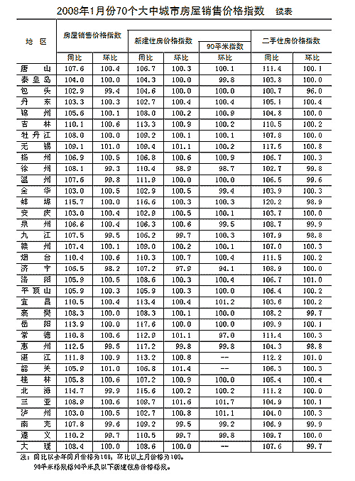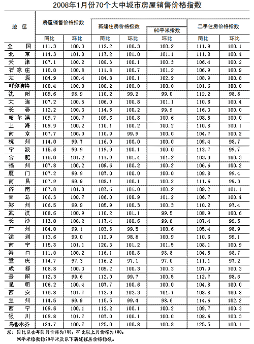 中新网3月6日电 国家发改委网站消息称,根据国家发展改革委、国家统计局调查显示,1月份,全国70个大中城市房屋销售价格同比上涨11.3%,涨幅比上月高0.8个百分点;环比上涨0.3%,涨幅比上月高0.1个百分点。