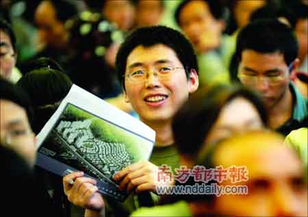 昨天上午,开发区万科新里程楼盘门前人头攒动,车龙由开创大道延伸至广汕路,场面热闹非常。在销售中心门外,开发商搭建了巨大的凉棚,摆设了3000多把坐椅,供通过审核的1400多户申购家庭等候选房。此次,新里程首批共推出541套限价房。