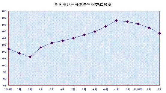 中新网4月18日电 据国家统计局网站消息,3月份,“国房景气指数”为104.72,比2月份回落0.83点,同比上升3.50点。