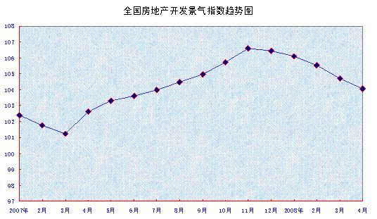 中新网5月16日电 据中国国家统计局网站消息,4月份,“国房景气指数”为104.07,比3月份回落0.65点,同比上升1.42点。