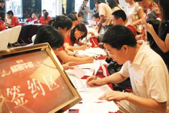 签定购房协议书的火爆场面。