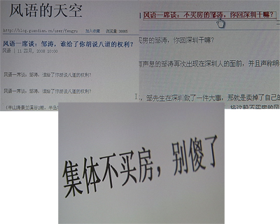 2006年邹涛第一次进入公众视野,那时深圳房价开始疯涨,邹涛发起了三年不买房运动,网络上一片轰动,不少人投了他的赞成票,现在还没到三年,仅仅两年后,邹涛又成立万人团购平台,号召买房了。