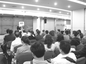 拍卖师万华介绍,今年拍卖会的火热与去年的冷清场面形成鲜明对比。在去年楼市低迷时期,拍卖现场常常只零散地坐着10多个竞买人,经常有房产因参与竞拍人数不足两人而流拍,只有进行多次调价多次拍卖,还有许多房产无人竞价而以底价成交,即使有人竞买也是寥寥数人。到拍卖后半场,由于有人提前离场,稀稀拉拉的几个人,也再没举牌热情。
